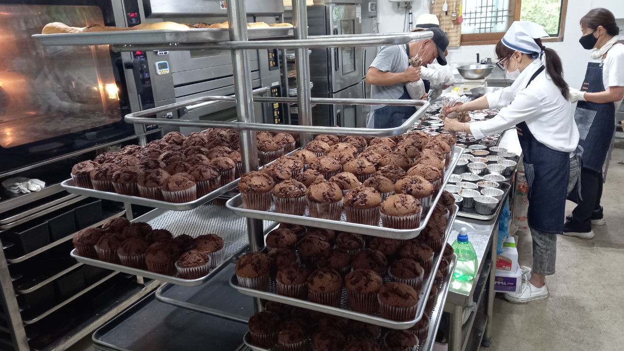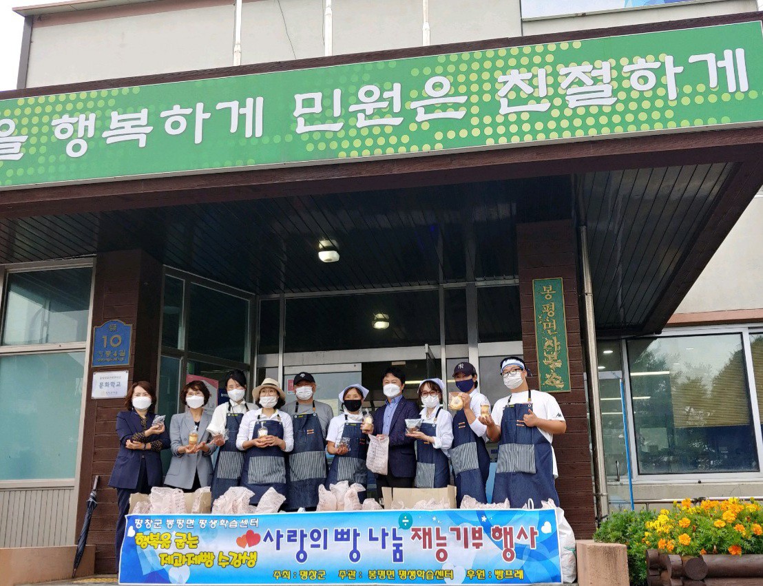 봉평면 평생학습센터“행복을 굽는 제과 제빵”프로그램에 참여하고 있는 강사(권혜경)와 1기 수강생 8명은 24일 지역사회 취약계층을 위해 직접 빵을 구워 전달했다.