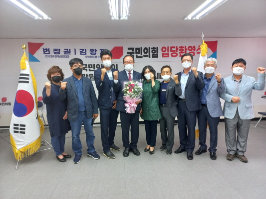 (평창=국제뉴스) 서융은 기자 = 9일 오후 15시께 김왕제 전 강원도 국장이 강원 춘천시 국민의힘 강원도당에서 전격 입당하고 출사표를 던졌다.이날 입당 환영식에는 유상범(홍천 횡성 영월 평창)
