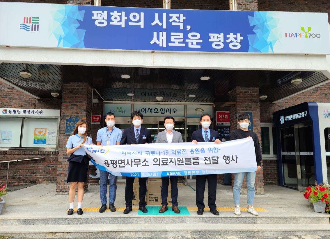 KTX 평창역(역장 주광성)9일 평창군 용평면사무소에 코로나19 방역물품을 기탁했다.