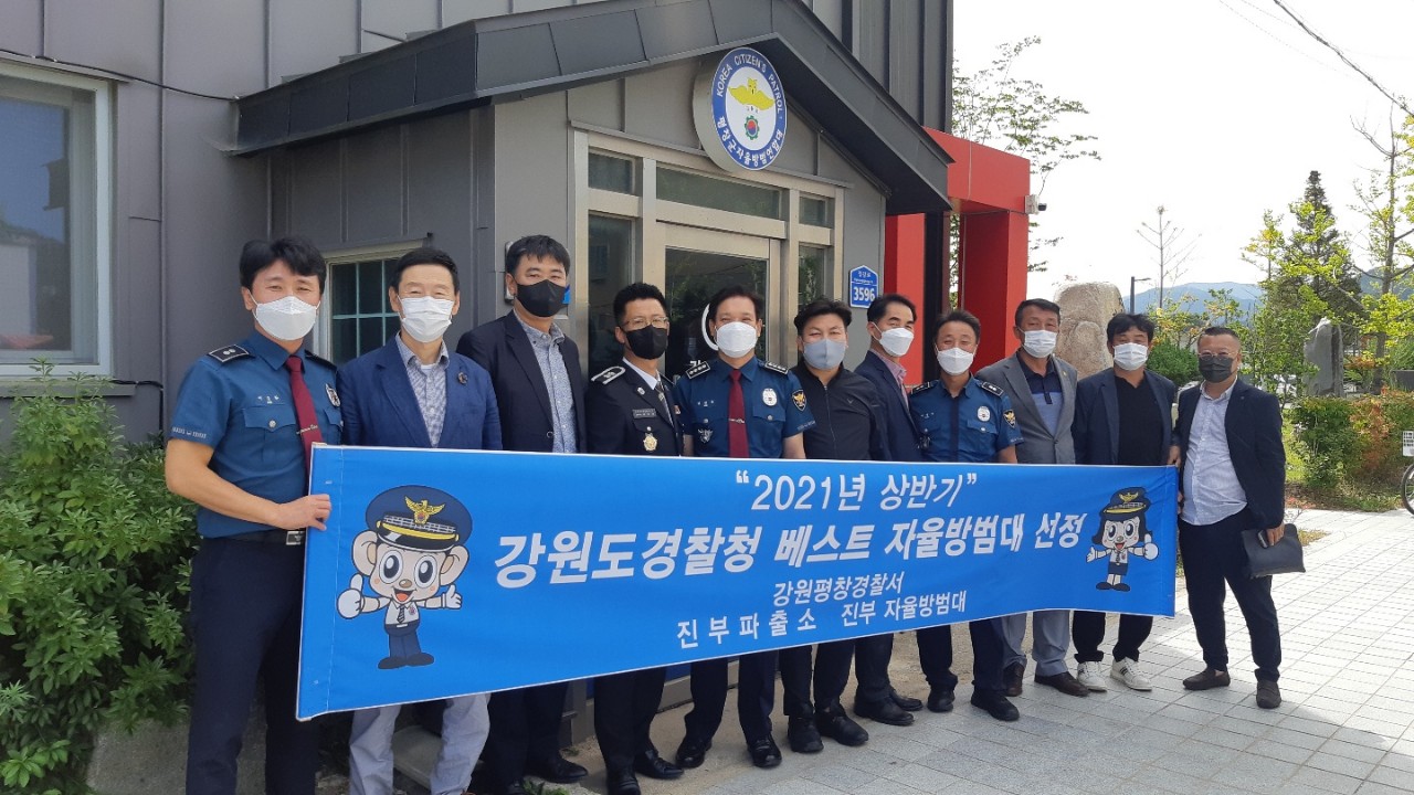 평창군 진부자율방범대(대장 이용기)는 강원청에서 주최한 ‘21년 상반기 공동체 치안 우수 자율방범대’에 선정되어 인증패 및 감사장을 전수받았다.