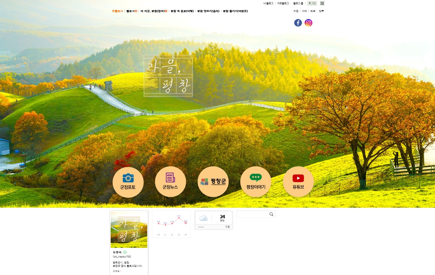 평창군은 대외 홍보 활성화 및 공식 블로그를 통한 편리한 SNS 서비스 제공을 위해 블로그를 개편해 이용자들의 편의성을 대폭 향상시켜 호평을 얻고 있다.