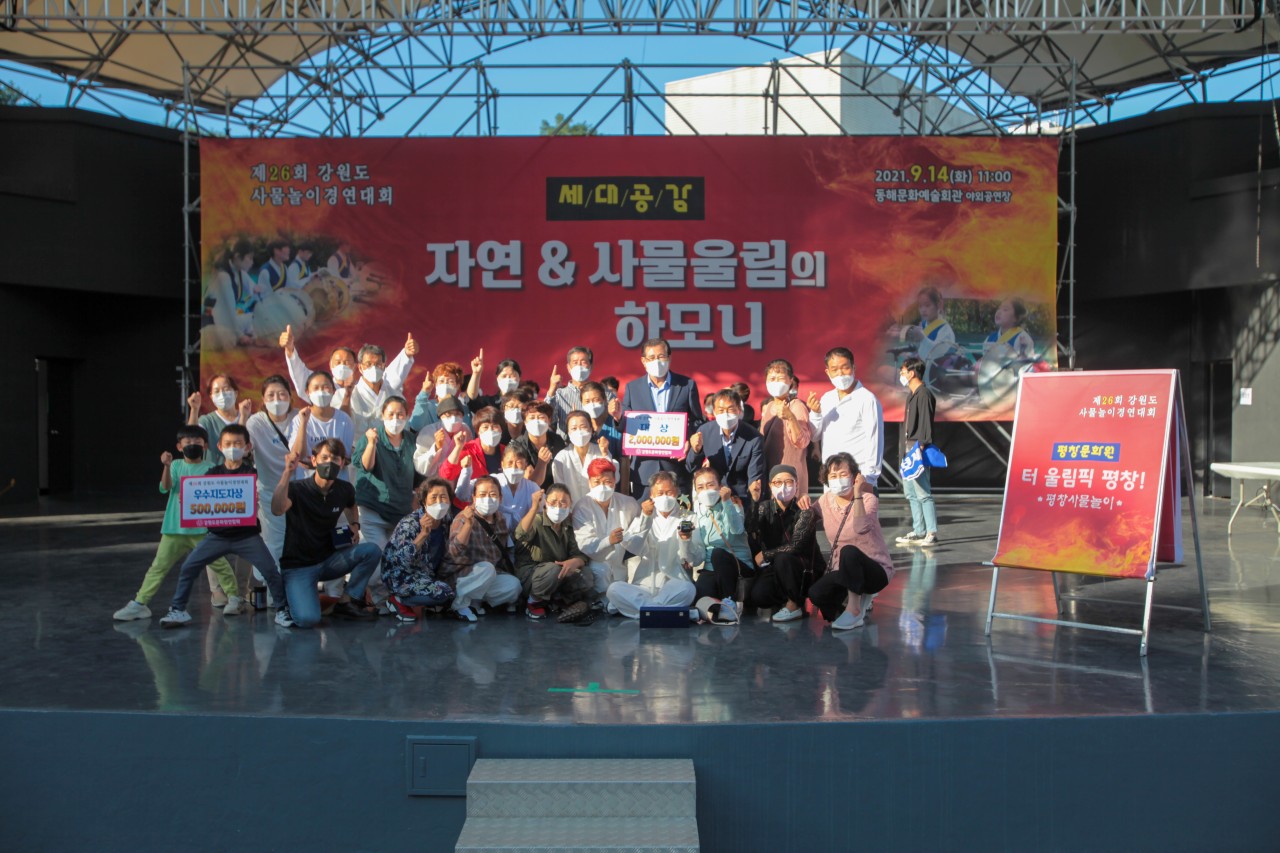 지난 9월 14일 제25회 강원도 사물놀이 경연 대회에서 평창문화원 민속예술단 "터 올림픽 평창" 팀이 '평창 사물'로 대상을 수상했다. ‘평창문화원 민속예술단’은 2016년 평창문화원 주관으로 ‘2018 평창 민속예술단’이라는 명칭을 붙여 2018 평창동계올림픽 성공 개최 기원 및 잔치 분위기 확산을 위해 창단하여 활동한 평창군의 대표 전통 민속 예술단이다.