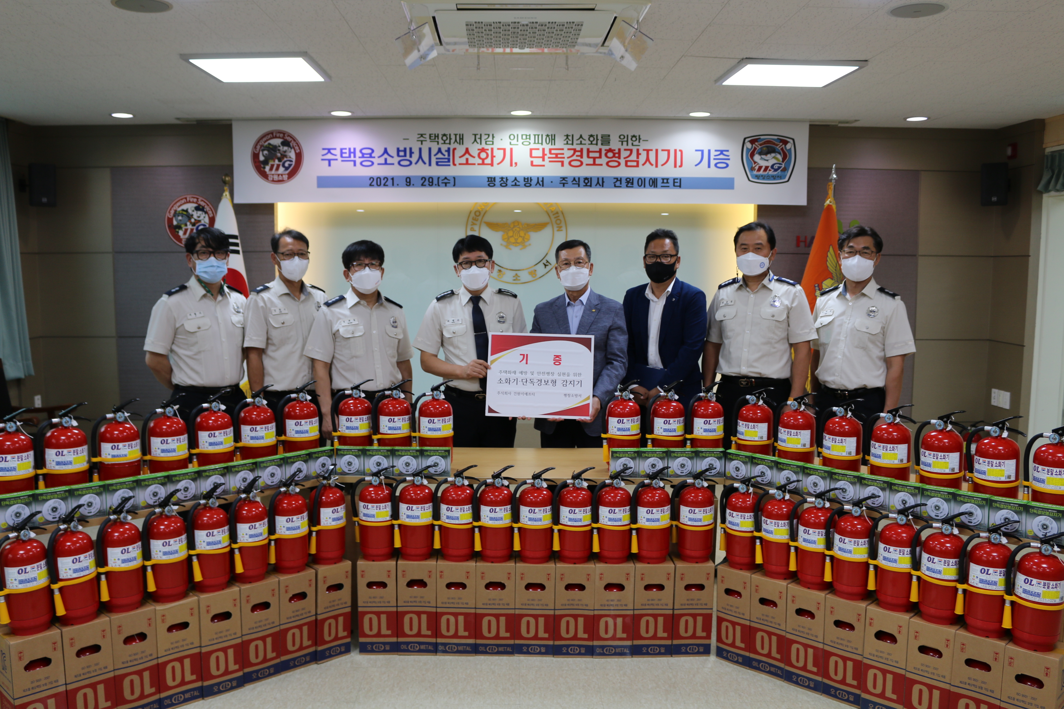평창소방서(서장 최영수)는 29일 ㈜건원이에프티에서 주택용소방시설을 기증했다고 밝혔다.