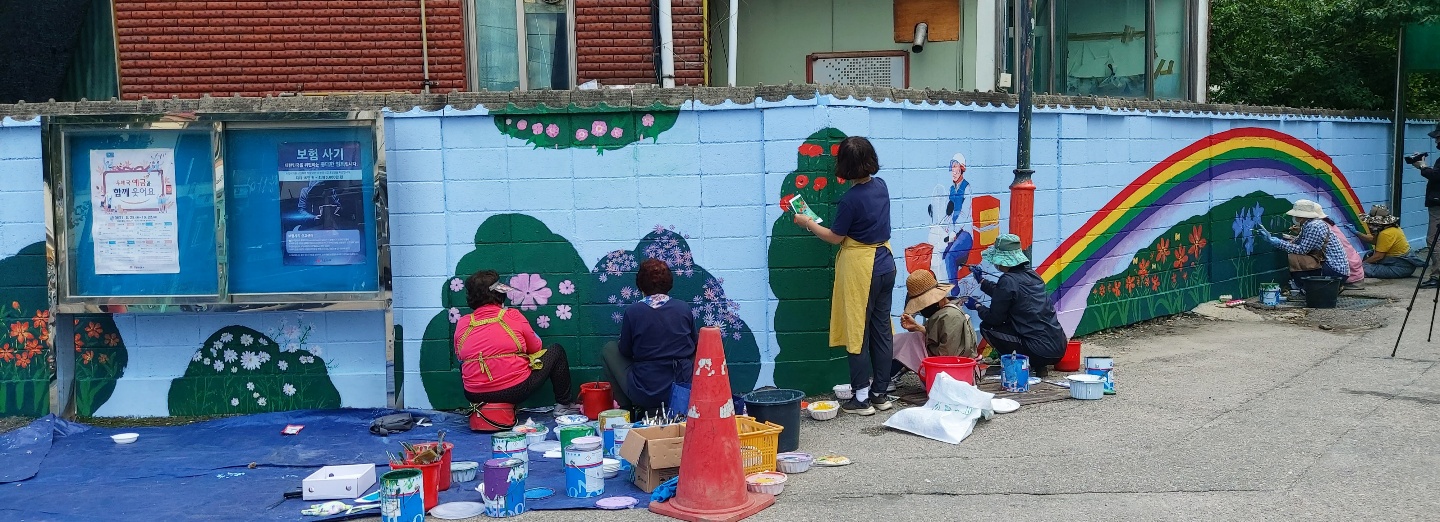 주민들이 그림을 배워 자신들의 동네를 아름답게 바꾸어 내는 ‘마을 골목길 갤러리‘프로젝트가 7월16일부터 10월1일까지 평창군 진부우체국 옆 담에서 진행되는데 9월 24일 벽화가 완성되었고 평가회만 남겨두고 있다.
