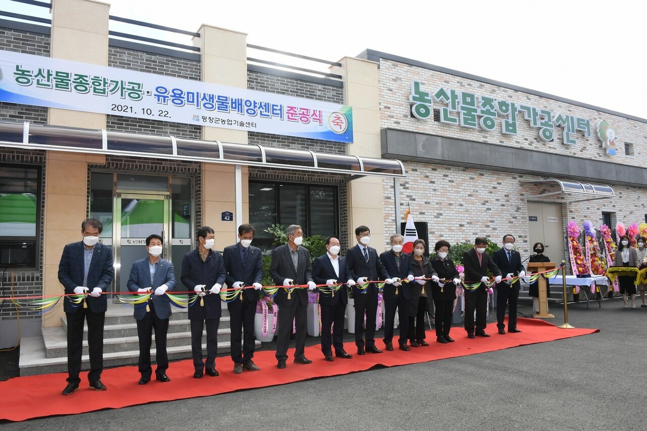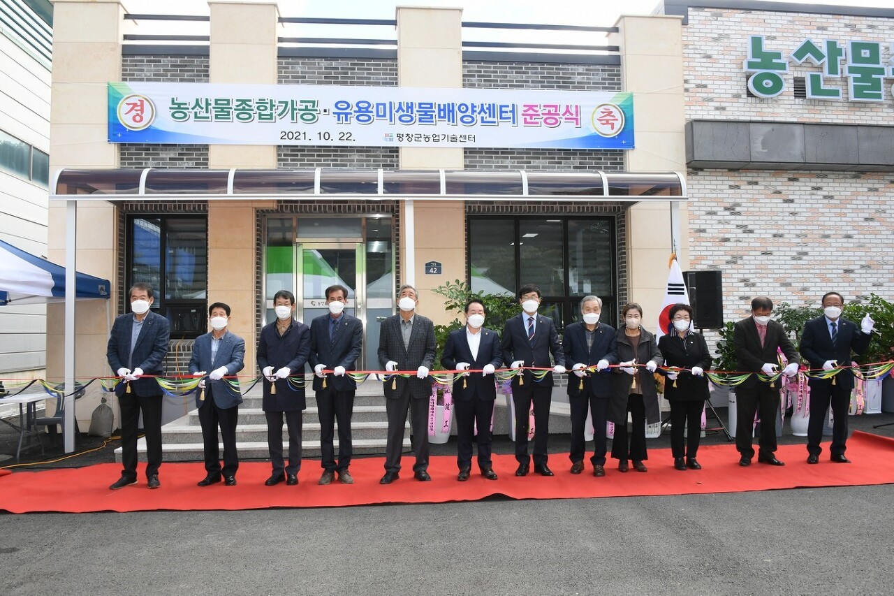 평창군은 22일 농업기술센터 부지 내에 건립한 농산물종합가공센터 앞에서 농산물종합가공센터와 유용미생물배양센터의 준공식을 개최하였다.