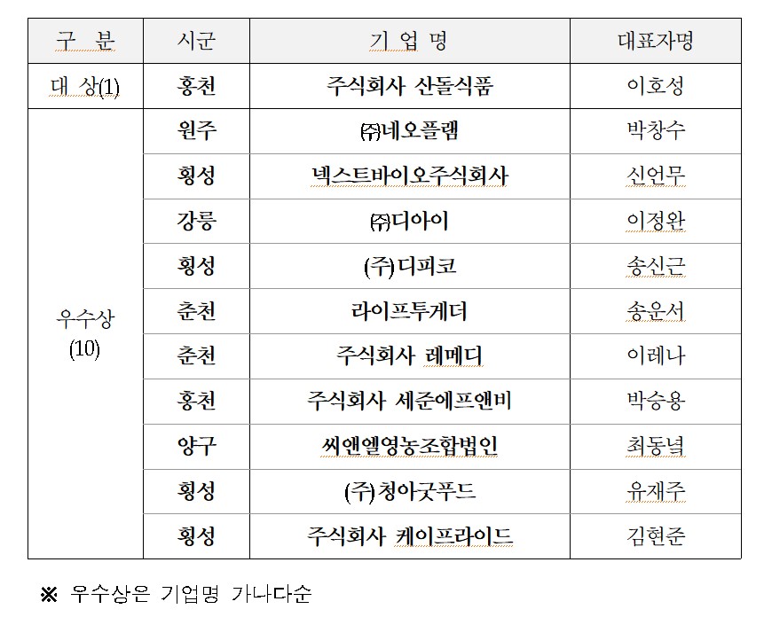 특히, 올해는 코로나19 상황 속에서도 사상 최대규모인 101개 기업이 일자리대상에 응모하는 등 현장의 높은 관심과 호응을 이끌어냈다. 세 차례에 걸친, 철저하고 공정한 심사과정을 통해 선정된 이번강원도 일자리대상 수상기업은 총 11개 기업이다.