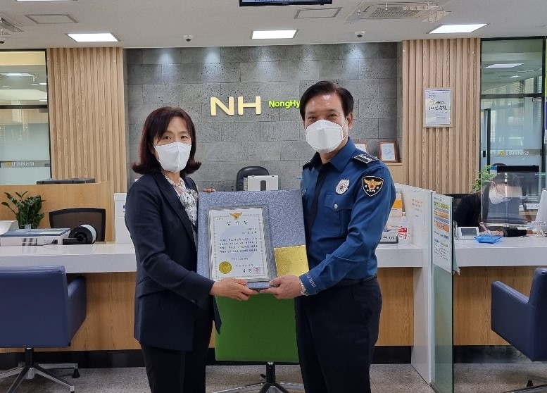 평창경찰서(서장 김진홍)에서는 10. 28.(목) 대관령 농협에 방문하여, 보이스피싱 사기 피해를 예방한 김순화 과장에게 감사장을 전달했다.