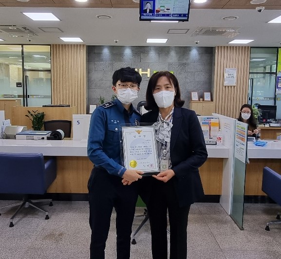 평창경찰서(서장 김진홍)에서는 10. 28.(목) 대관령 농협에 방문하여, 보이스피싱 사기 피해를 예방한 김순화 과장에게 감사장을 전달했다.