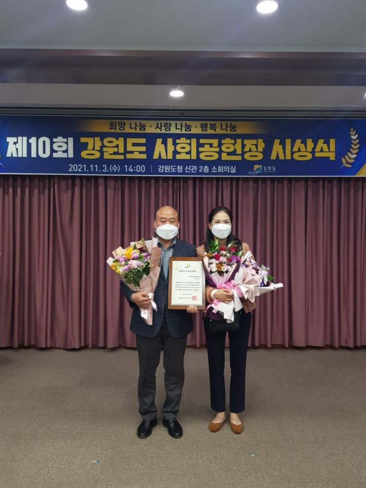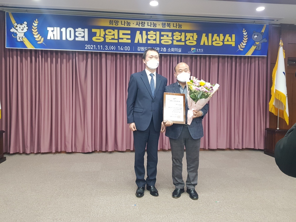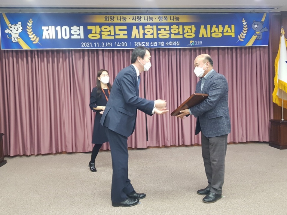 평창읍지역사회보장협의체 공동(민간)위원장 지영우는 3일 오후 2시 강원도청에서 열린 ‘제10회 강원도사회공헌장’ 시상식에서 행복나눔 부분 사회공헌장을 수상한다.