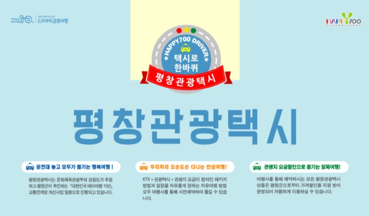 평창관광 택시패스는 문화체육관광부와 강원도가 후원하는『대한민국 테마여행 10선』공모사업의 일환으로 제2권역에 선정된 평창군, 강릉시, 속초시가 공통 추진하는 프로젝트로 대도시와 비교해 관광교통 인프라가 상대적으로 취약한 강원여행에 새로운 대안을 마련하고자 3개 시·군이 협업하여 추진 중이다.