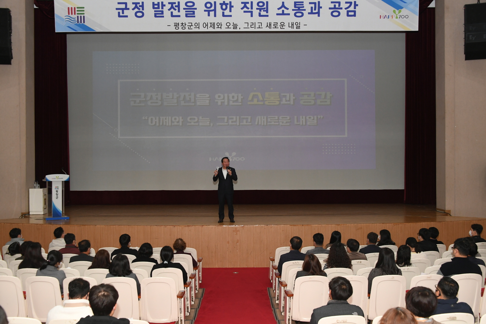 이번 교육은 올림픽 이후 ‘평화도시 평창’을 만들기 위해 이뤄낸 노력과 성과를 한왕기 군수와 직원들이 함께 나누고, 이를 성장동력으로 삼아 추진방향을 짚어보는 시간으로, 군정 비전과 목표를 다지고 활력 있는 공직문화 조성을 위해 마련됐다.