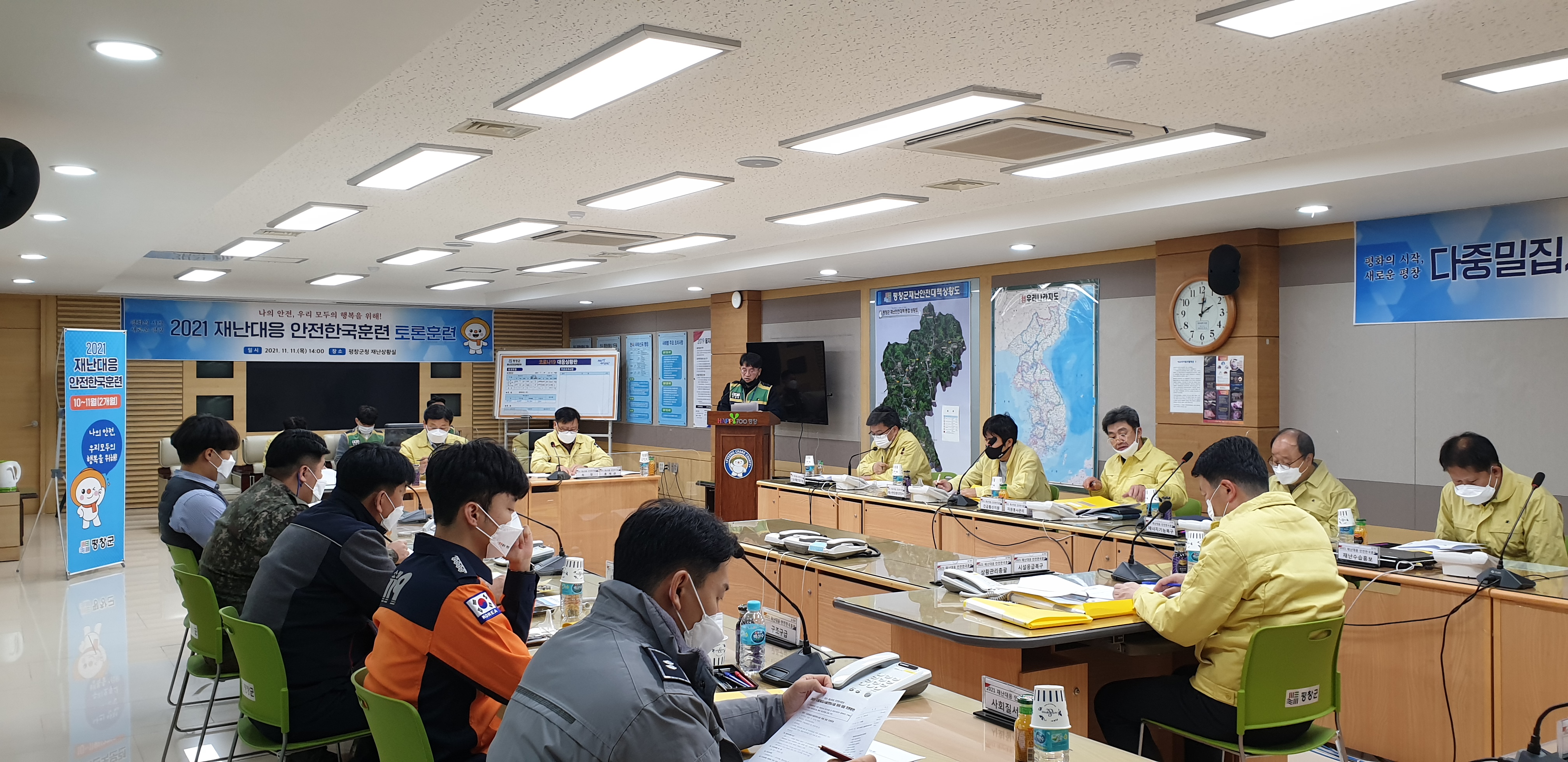 평창군은 안전한국훈련의 일환으로 11일 군청 재난상황실에서 ‘다중밀집시설 대형화재 대응 토론훈련’을 실시했다.