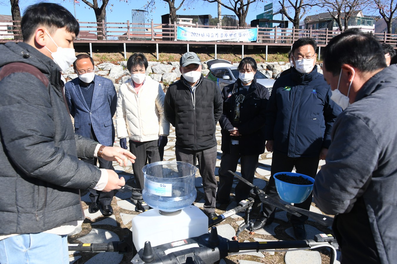 행사에 쓰인 드론은 농업기술센터에서 농산물 병충해방제를 위해 보유하고 있는 것으로, 사전 시험 비행을 통하여 드론에서 종자 방출 시 상처발생 여부 및 고도에 따른 방출 반경 등을 미리 확인하였다.