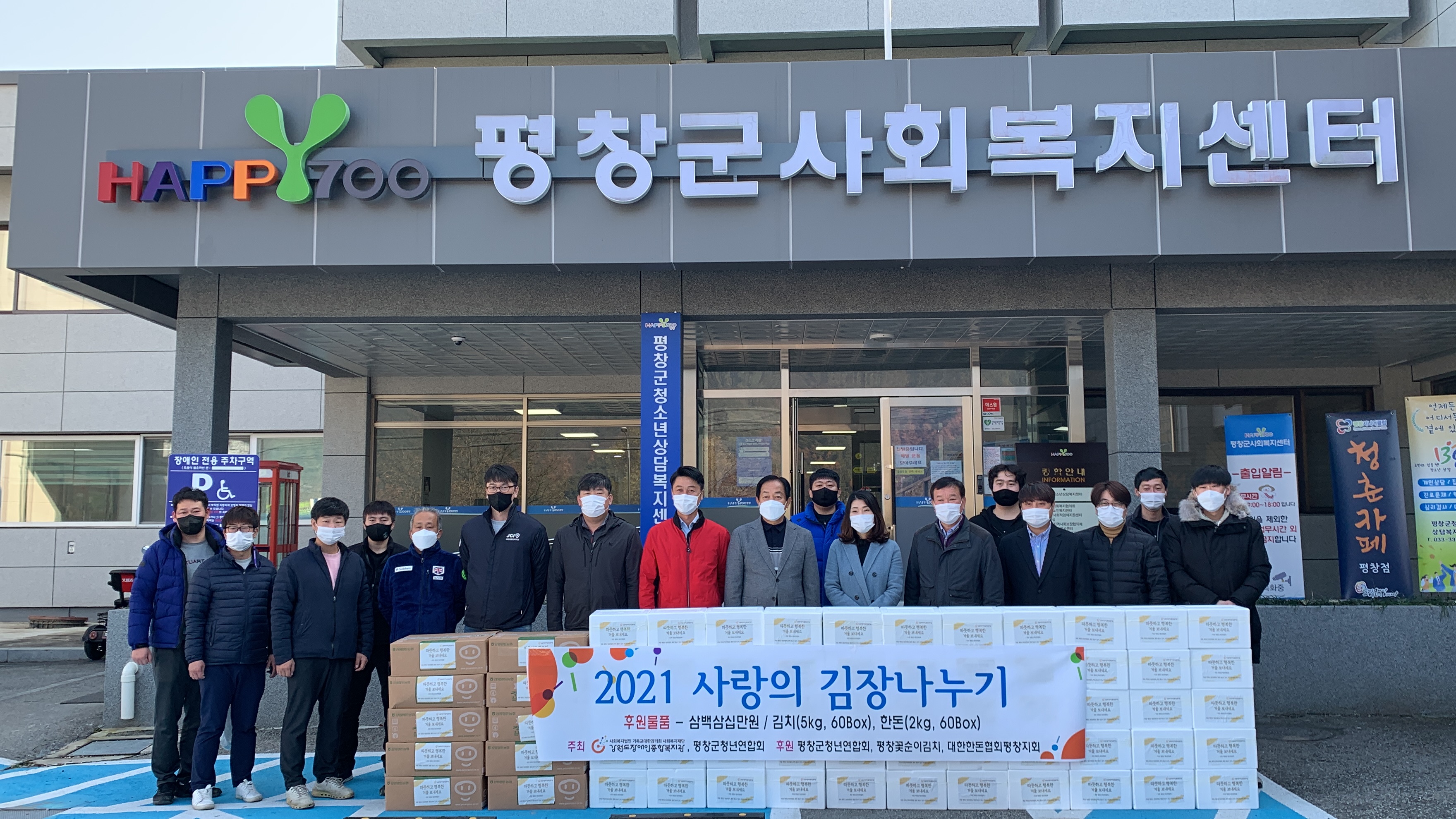 이번 김장나누기는 평창군 청년연합회 주최 및 후원으로 평창꽃순이김치, 대한한돈협회 평창지회에서 김장김치 5kg, 돼지고기 2kg 60set를 후원하였으며 평창군 청년엽합회는 평창군에 있는 장애인 이웃을 위해 평창군 청년과 지역 업체들이 나눔을 실천하였으며 장애인과 함께 살아가는 지역사회 만들기를 위해 노력하고 싶다는 뜻을 밝혔다.