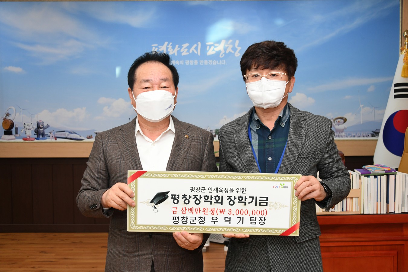 우덕기 팀장은 “지난 22일 제25회 민원봉사대상 본상을 수상하여 받은 시상금 300만 원을 뜻깊게 사용하고 싶어 평창장학회에 기탁하기로 했다.”며, “학생들이 자신의 역량을 충분히 발휘하면서 지역의 인재로 성장할 수 있는 교육기반을 만드는데 보탬이 되길 바란다.”고 소감을 전했으며,