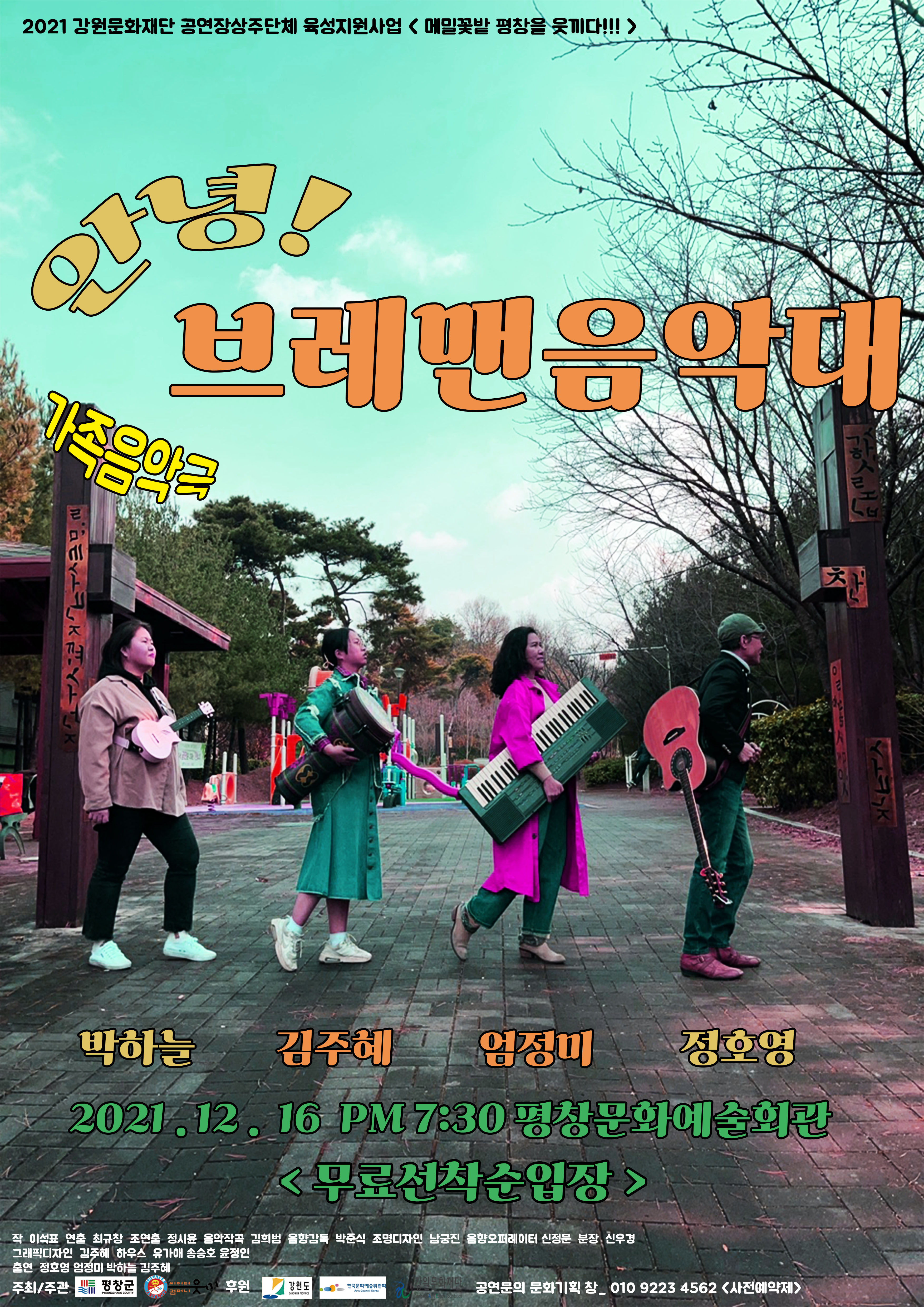 평창문화예술회관 상주단체 씨어터컴퍼니웃끼가 네 번째 공연을 개최한다. 평창문화예술회관 대공연장에서 가족음악극 ‘안녕, 브레맨음악대’로 16일 오후 7시 30분에 열린다.