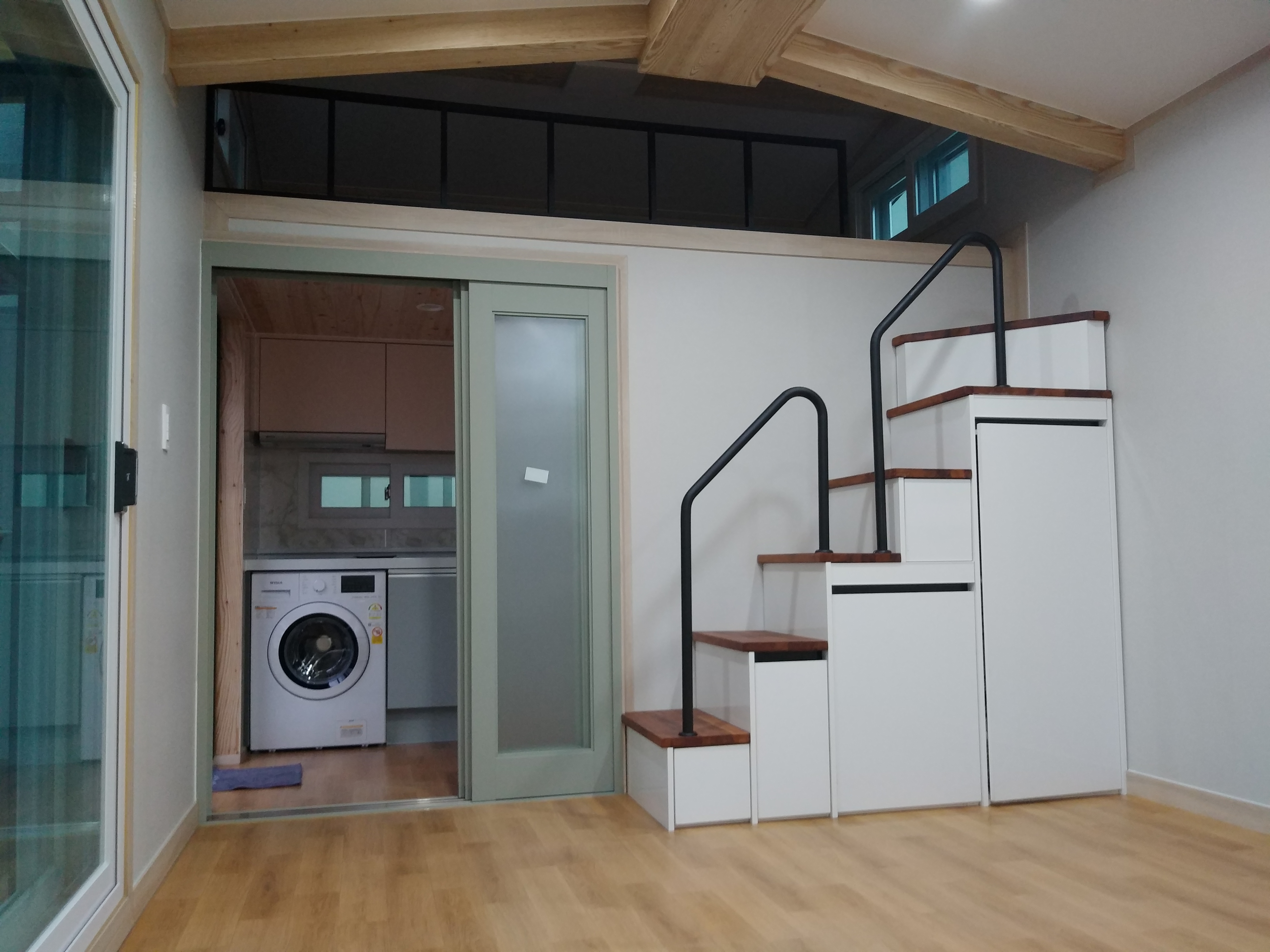 이번에 개선된 휴게실은 환경미화원들의 요구를 적극 수용하여 주문 제작한 ‘주택형 컨테이너’ 하우스로 냉·난방 시설 및 샤워실, 빌트인 세탁기, 인덕션과 같은 기본 편의시설을 두루 갖추고 있다.