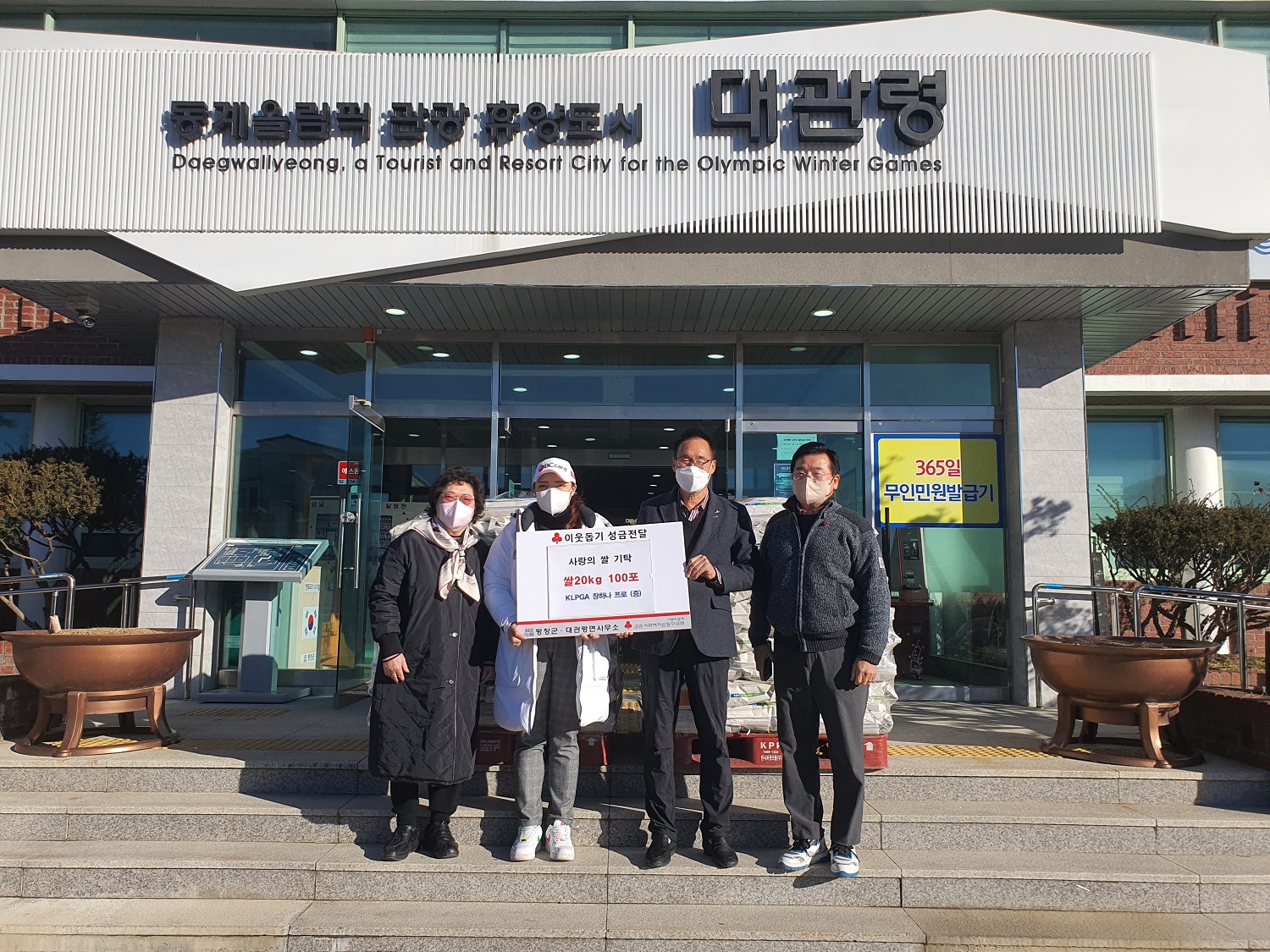 KLPGA에서 활동 중인 장하나 프로는 13일 대관령면사무소를 방문하여 관내 저소득층에 전달해달라며 사랑의 쌀(20kg) 100포(590만원 상당)을 대관령면에 기탁하였다.