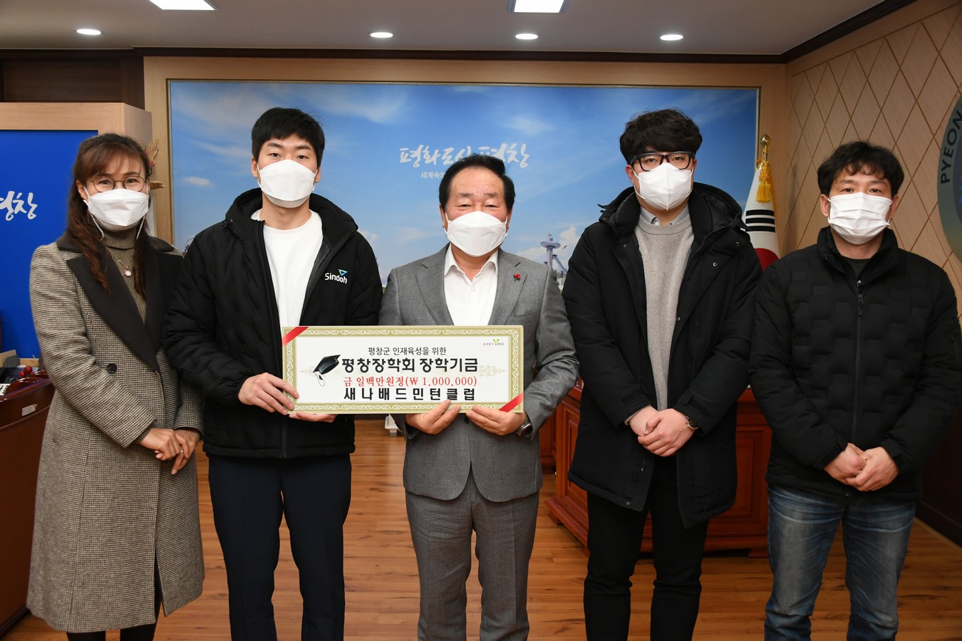 새나배드민턴클럽은 평창읍에 소재한 배드민턴 동호회로 회원 60여명이 소속되어 취미 활동을 하고 있으며, 이번 기탁금은 회원들의 정성으로 십시일반 회비를 모아 마련하였다.