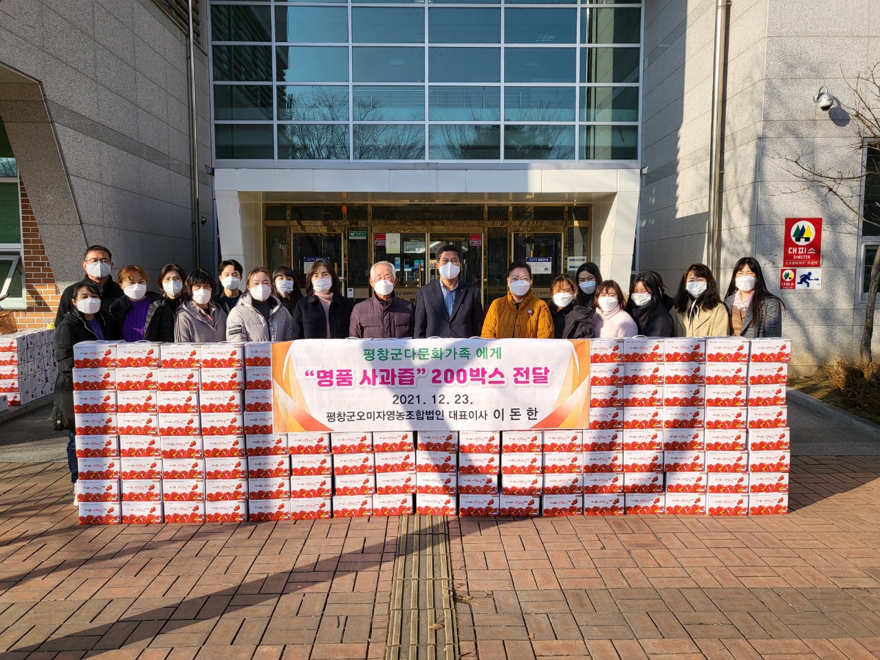 최미자 평창군가족센터장은 “어려운 시기에 평창군의 특산품인 맛있는 사과즙을 기탁해 준 따뜻한 마음에 감사드리며 나눔의 손길이 필요한 다문화가정들에게 훈훈한 연말연시를 보낼 수 있도록 잘 전달하겠다”고 감사의 인사를 전했다.
