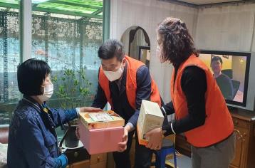 ○ 이번 활동은 반올림 가게 수익금으로 과일 세트, 떡국 떡, 전병, 부치기 등을 준비하고, 산양삼 두유 한박스와 함께 평창읍지역사회보장협의체 임원진이 직접 가정을 방문하여 전달하였음.