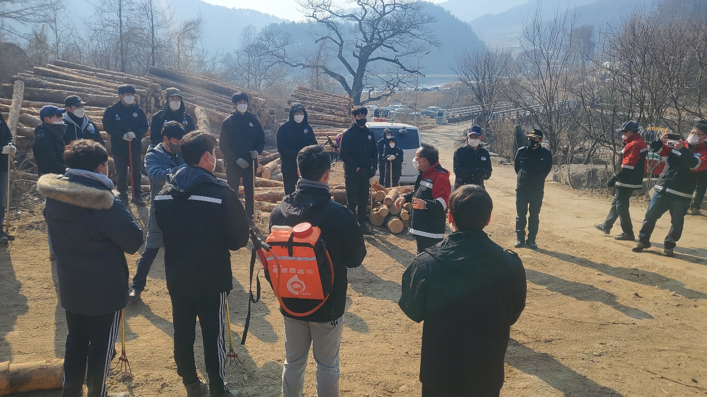 평창군 방림면 계촌리 산불발생 - 주불진화 후 공무원 등 잔불진화작업 중