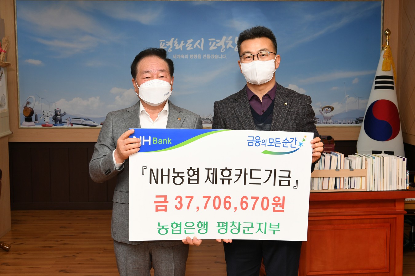 NH농협은행 평창군지부장(지부장 최창순)은 28일 평창군을 방문해 2021년도분 농협제휴카드 발생기금 37,706,670원을 전달하였다.