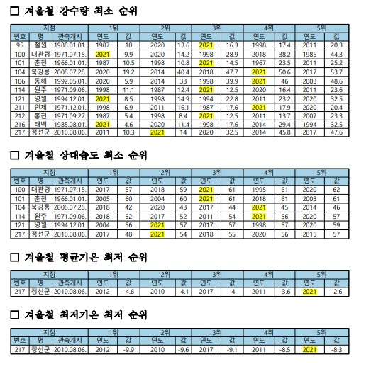 강원지방기상청(청장 박훈)은‘2021년 겨울철 강원도 기후 분석 결과’를발표하였다.