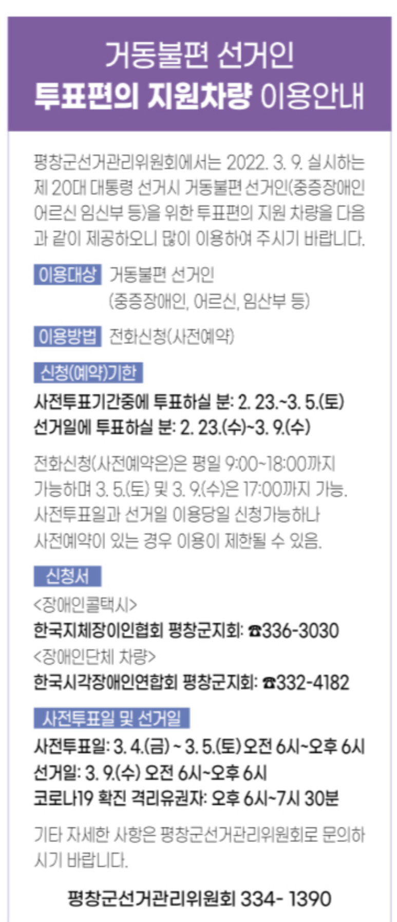 선거 - 내투표소찾기, 평창군 선거인 교통편의 지원차량, 평창군 거동불편인 선거인 투표편의 지원차량