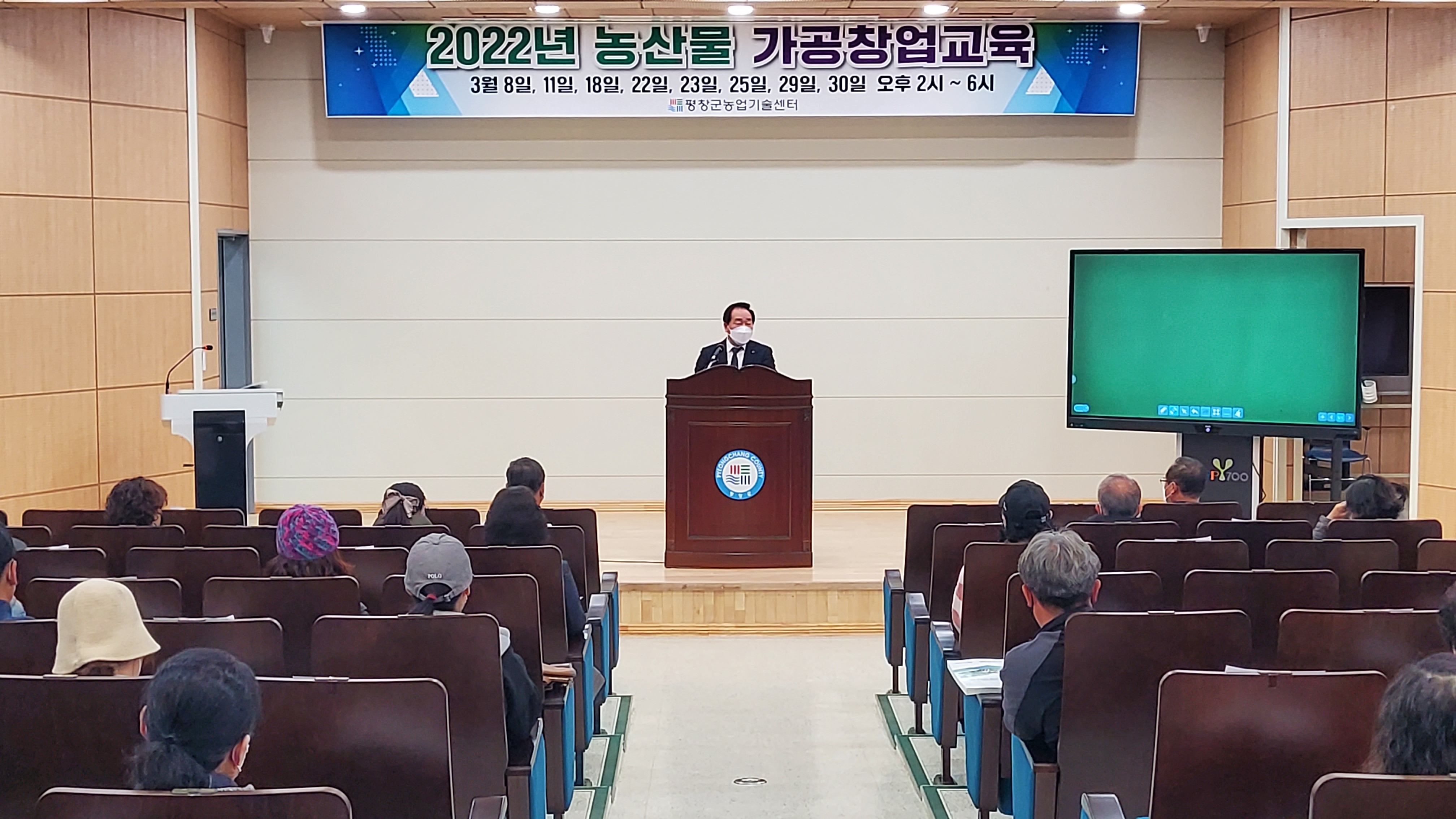 평창군 농업기술센터는 8일 오후 농업인교육관 2층 대회의실에서 지역농산물을 이용한 부가가치창출 방안에 대한 내용으로 평창군 농업인을 대상으로 농산물 가공창업교육을 진행했다.