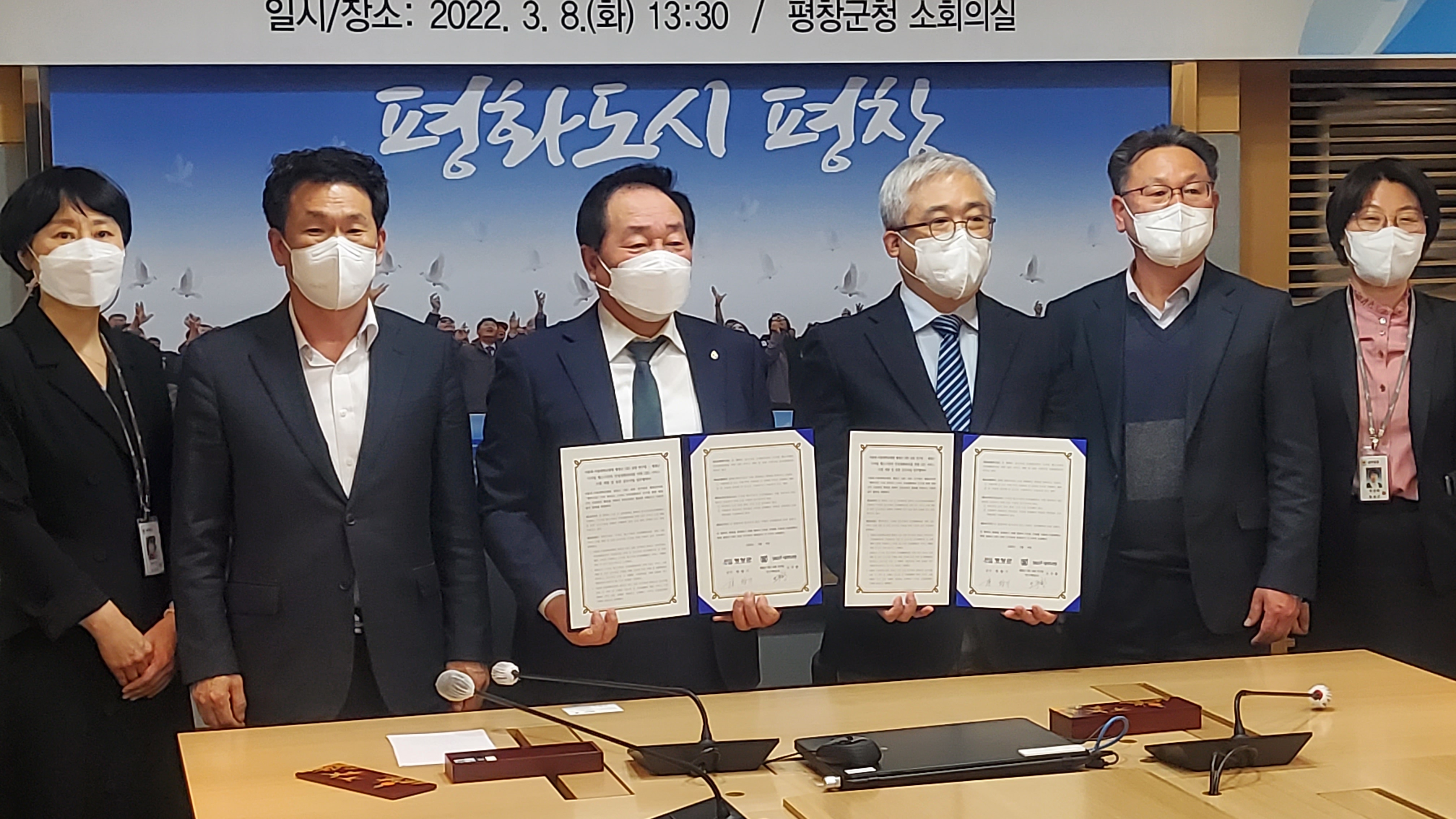 평창군(군수 한왕기)과 '서울대-서울대학교병원 평창군 O2O 실증 연구팀'(연구책임교수 오주환)은 8일 오후, 군 소회의실에서 평창군 지역 주민의 만성질환관리와 건강증진을 위해 한국건강증진개발원이 주관하는 "디지털 헬스기반의 만성질환관리를 위한 O2O 서비스 모델 개발 및 실증" 공모사업을 위한 업무협약을 체결했다.