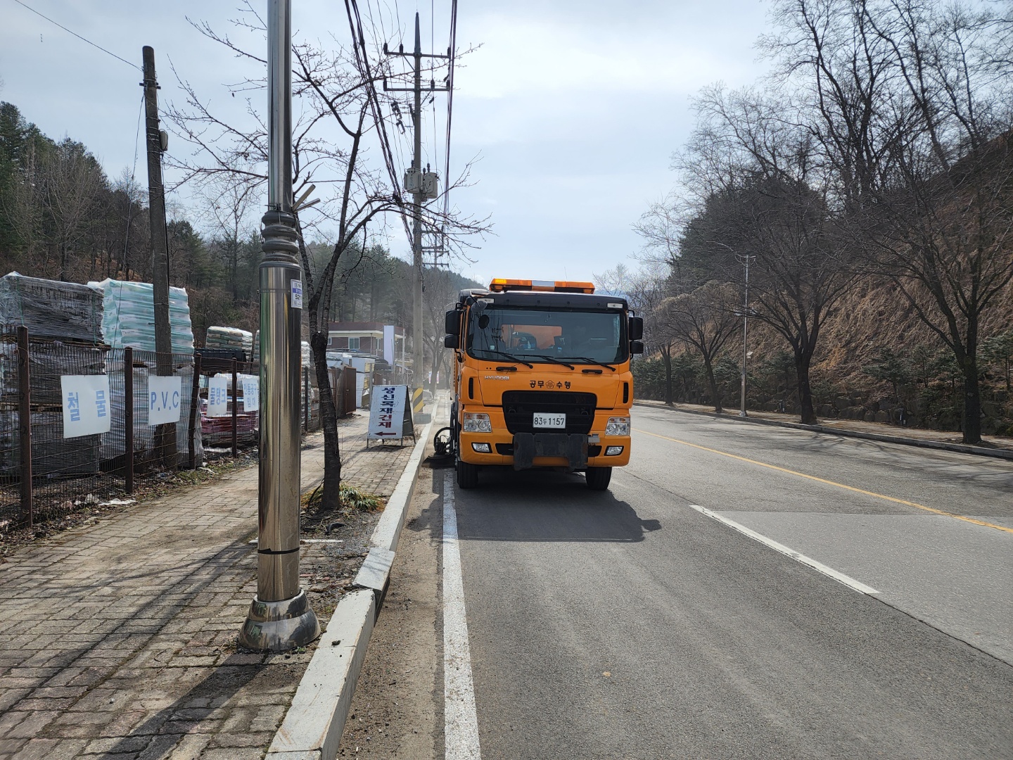 평창군은 겨울철 제설작업으로 발생한 도로 잔류 제설재 제거와 미세먼지 저감 대책 등 도로 환경 개선을 위하여 살수 및 노면청소 중임을 밝혔다.